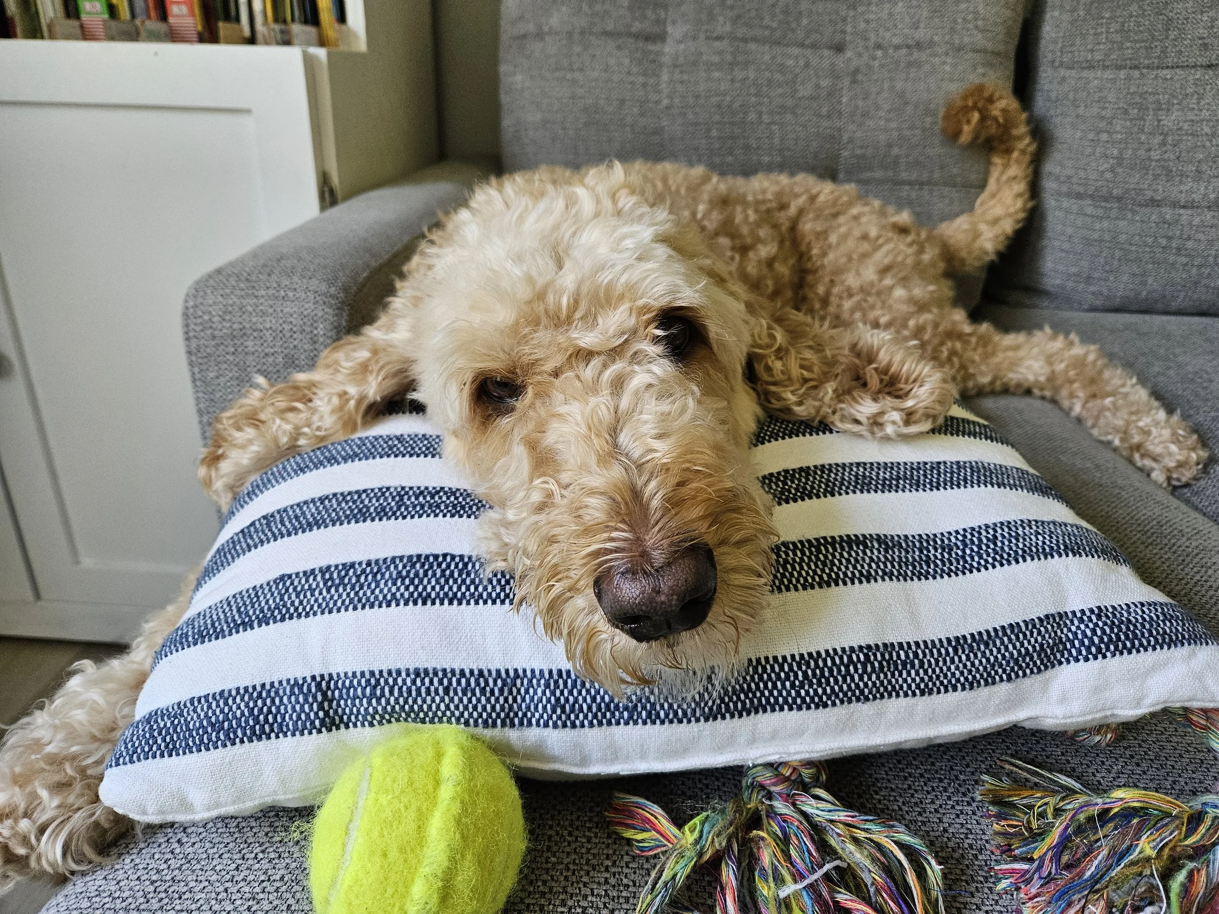 Our puppies are raised in our home alongside our three kids. They are continuously loved on and cared for. From their first breath, our puppies get used to people of all ages. Through daily compassionate care, ENS and ENI, their senses are consistently being engaged as they get used to the world around them.